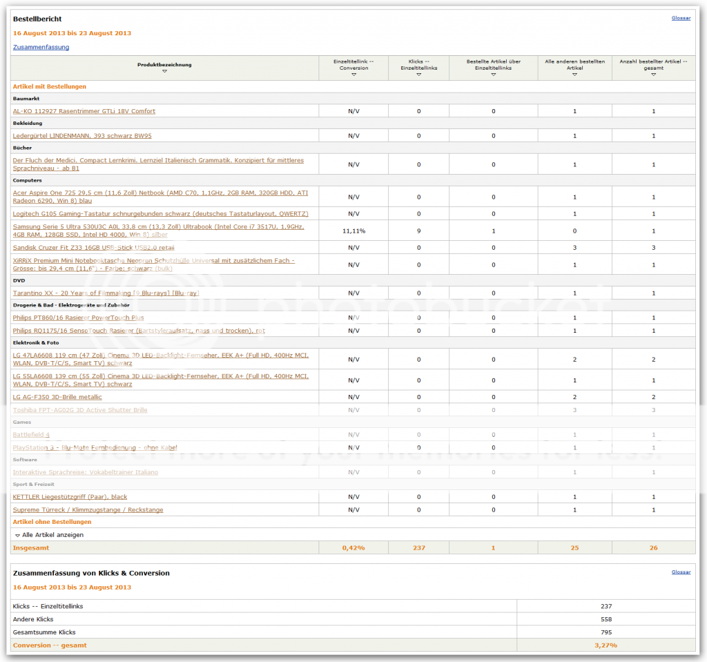 Bestellbericht 16. August 2013 bis 23. August 2013: