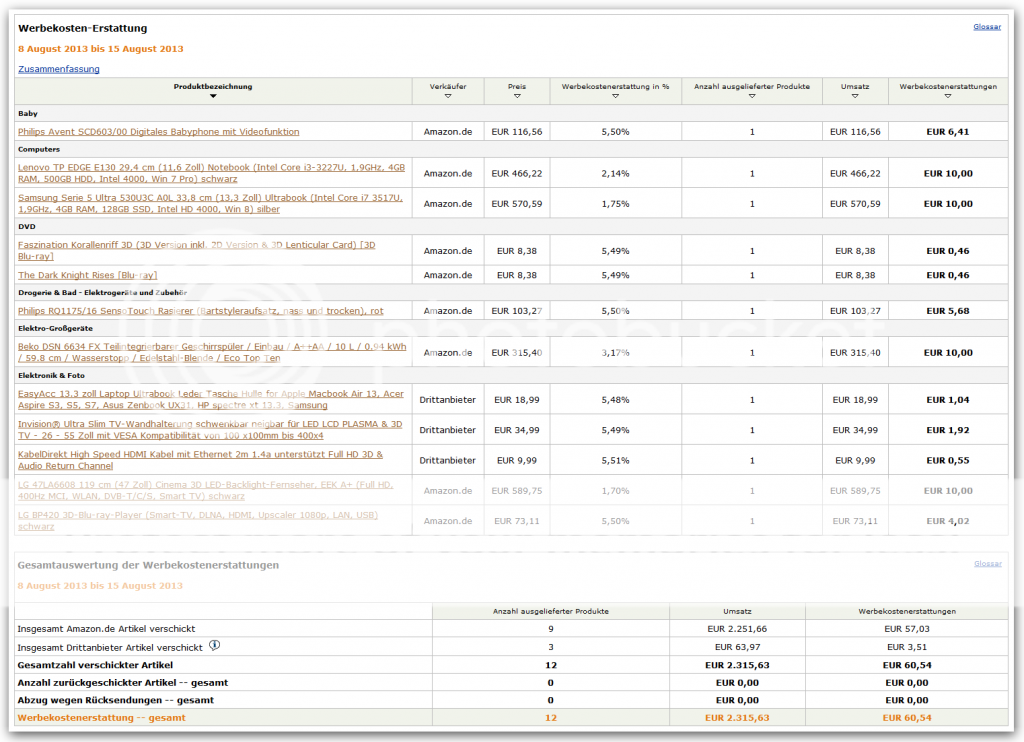 Werbekostenerstattung zweite August-Woche 2013
